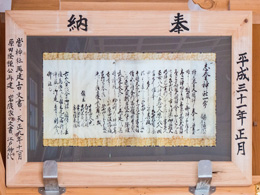 天正9年(158111月)の再建に当たり原田隆種(了栄)への願い書などが代々宮司家であった岩隈家に文書として残されています。